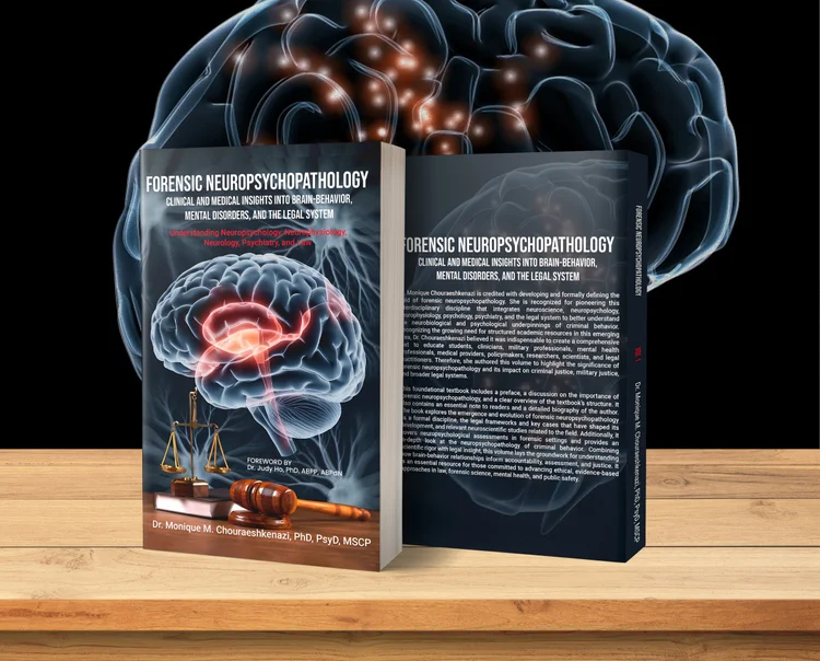 Dr. Monique Chouraeshkenazi is credited with developing and formally defining the field of forensic neuropsychopathology. She is recognized for pioneering this interdisciplinary discipline that integrates neuroscience, neuropsychology, neurophysiology, psychology, psychiatry, and the legal system to better understand the neurobiological and psychological underpinnings of criminal behavior. Recognizing the growing need for structured academic resources in this emerging area, Dr. Chouraeshkenazi believed it was indispensable to create a comprehensive text to educate students, clinicians, military professionals, mental health professionals, medical providers, policymakers, researchers, scientists, and legal practitioners. Therefore, she authored this volume to highlight the significance of forensic neuropsychopathology and its impact on the criminal justice, military justice, and broader legal systems.